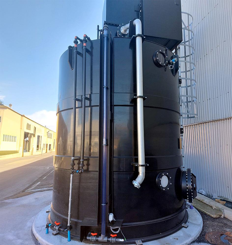 - Saltsilo til opbevaring af salt der anvendes til regenerering af blødgøringsanlægget