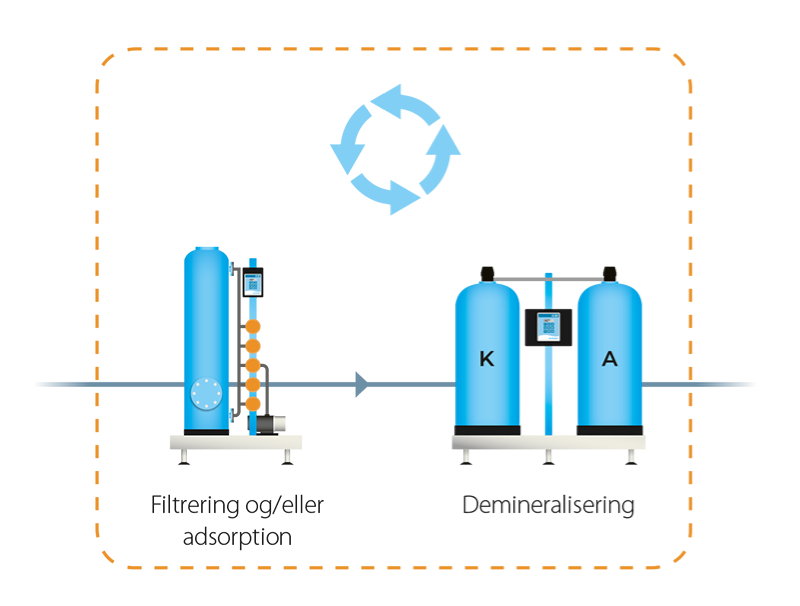 Recirkulation over ionbyttere reducerer den nødvendig mængde spædevand og er en bæredygtig løsning for at sænke vandforbruget og endda reducere omkostningerne.