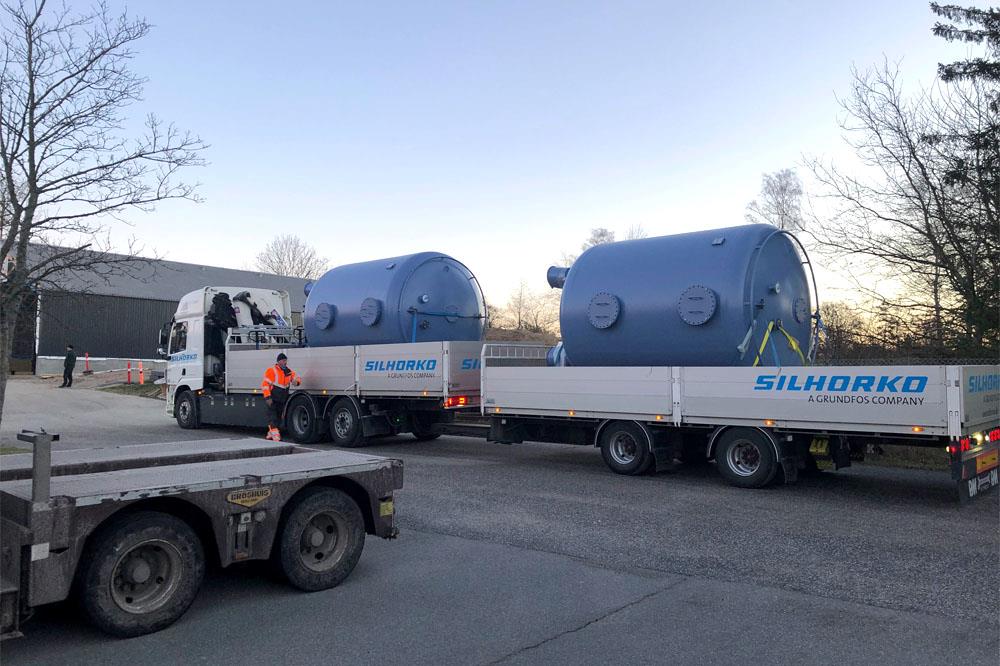 Udsholt Vandværk får fremover to behandlingslinjer bestående af i alt fire lukkkede trykfilteranlæg. Derudover tilgår to mindre trykfilteranlæg som skal bruges til genfiltrering af filterskyllevandet. (Foto: Kåre Andersen © SILHORKO)