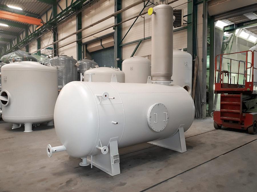 Begge typer har en cylindrisk stålbeholder, der har endebunde med højere tryktolerance, og fås i standardmoduler på op til 40 m³/h.