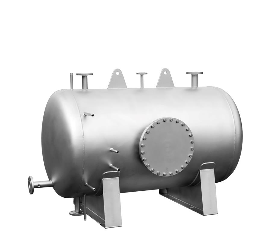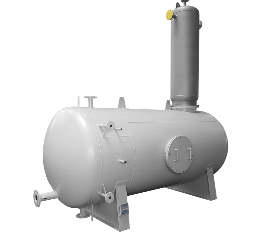 Sprøjtetypen består af en vandret cylindrisk beholder, der fungerer som både afluftningssektion og reservoir for kedelfødevand.