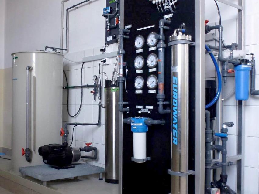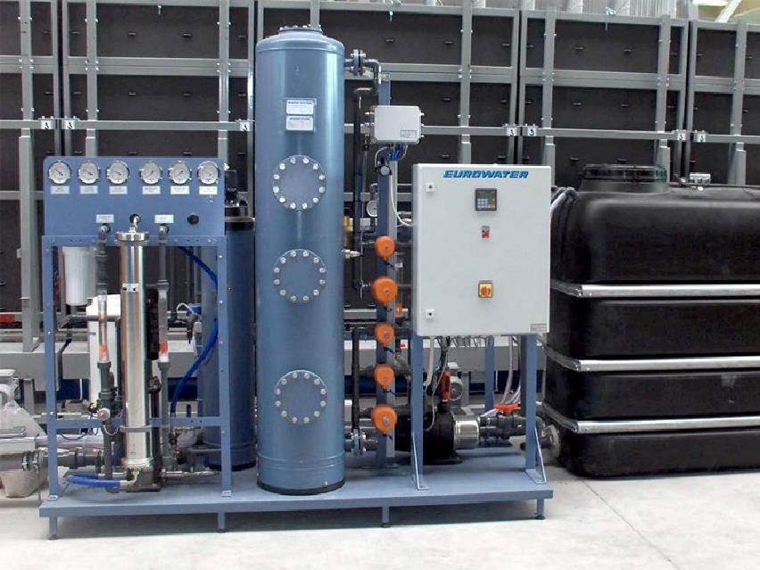 Omvendt osmose (RO) anvendes til afsaltning af vandet for at opnå demineraliseret vand af høj kvalitet.