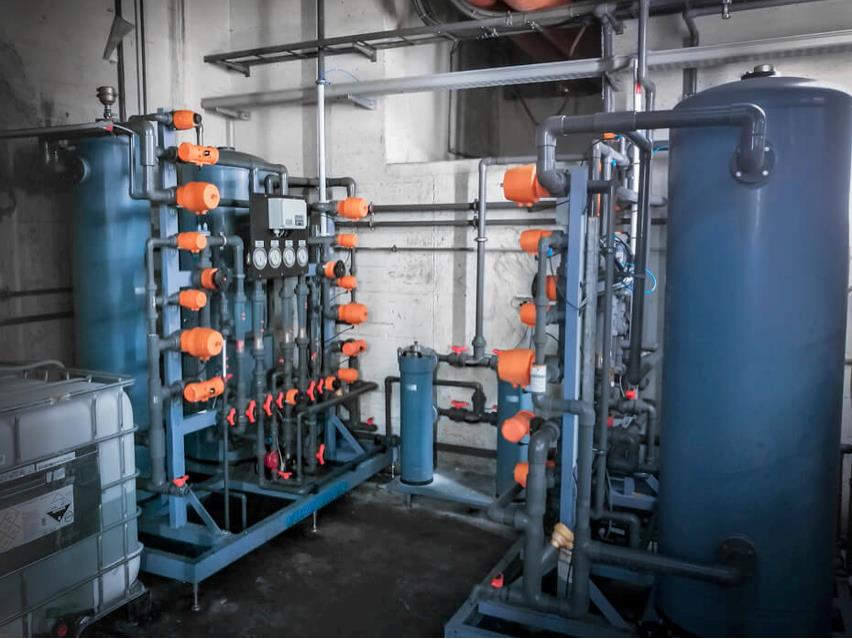Blødgøringsanlæg til fjernelse af kalcium og magnesium i vandet, for at reducerer vandets hårdhed.