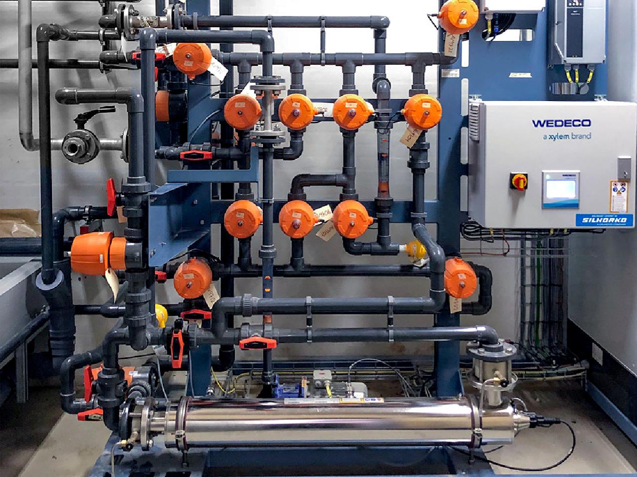I installationen indgår der to stk. Wedeco UV-desinfektionsanlæg, som begge opfylder et lovmæssigt sikkerhedskrav. Det ene anlæg anvendes til at desinficere det bløde vand, da blødgøring af drikkevand er karakteriseret som videregående vandbehandling. Det andet UV-anlæg er installeret mellem saltsilo og blødgøringsanlæg og en sikring mod en eventuel bakteriologiske forurening, direkte fra den løbende saltleverance.