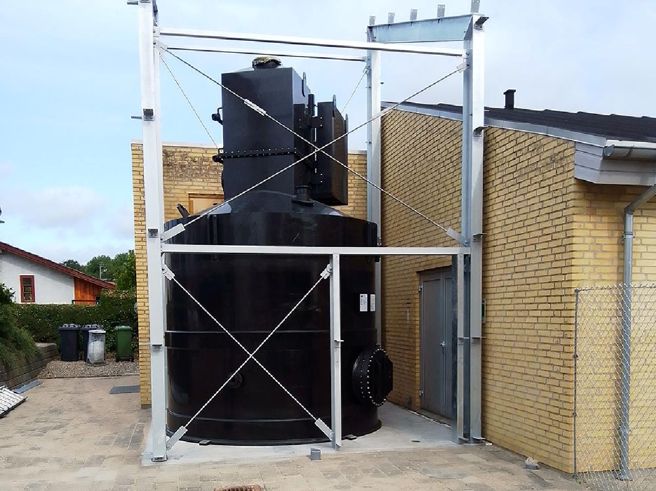 Salt til regeneration opbevares og opløses i en særlig saltsilo. Den kan rumme 15 tons salt, hvilket svarer til godt tre måneders drift. I praksis fyldes der 10 tons salt på efter hver femoghalvfjerdsindstyvende dag. Siloen er udført i sort HDPE (polyethylen) og egnet til udendørs placering. Som det ses på billedet, vil siloen blive skjult af en skalbygning.