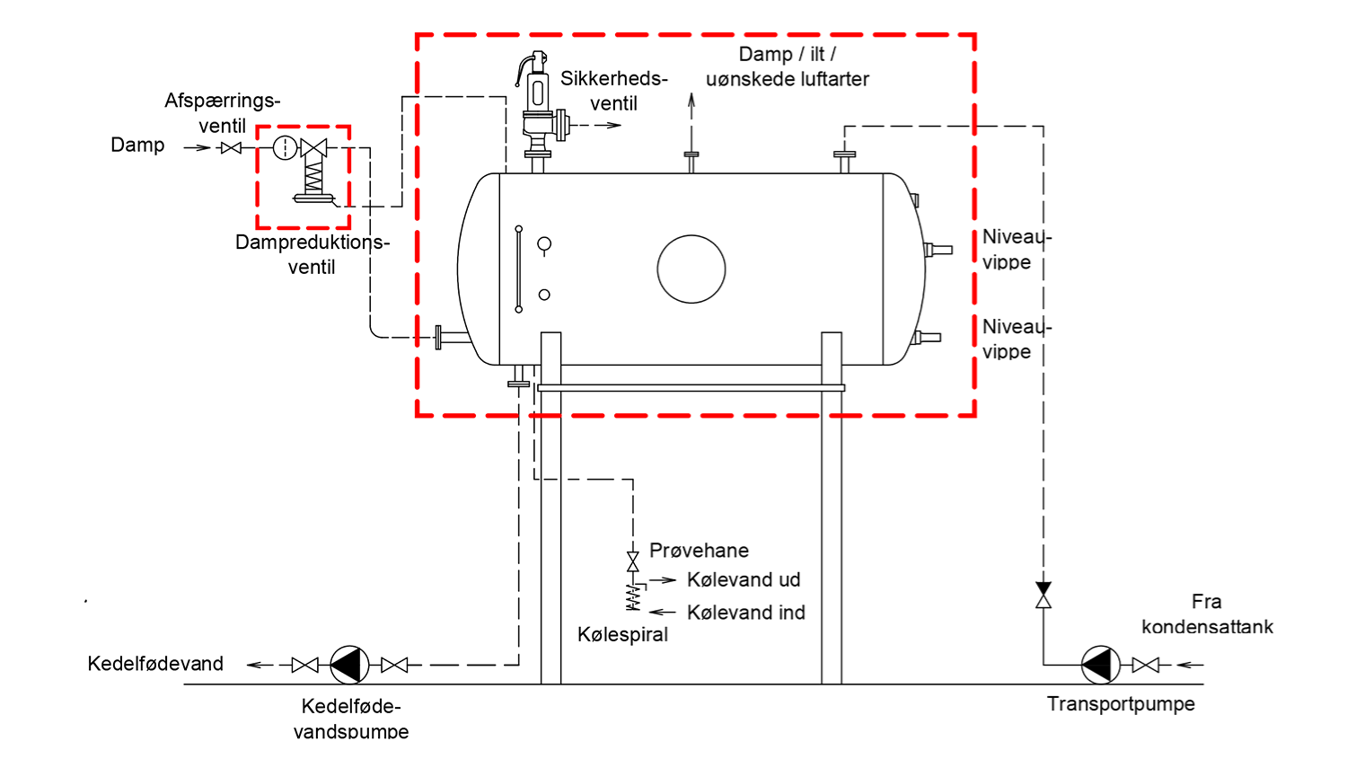Sikrer en meget pålidelig og stabil drift også ved ændring i ydelse. - Én dampinjektion