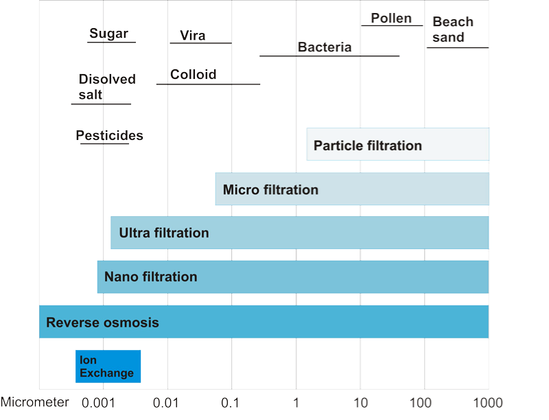 Membranfiltrering er en trykdrevet separationsmetode, der fungerer uden brug af kemikalier. Membranfiltrering kan producere demineraliseret vand af høj kvalitet eller delvist blødgjort vand uden partikler og mikroorganismer.