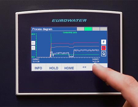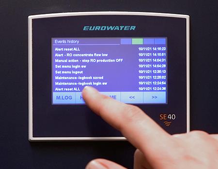 SE40 kan bruges til at overvåge tryk, flow og ledningsevne. Det giver en omfattende oversigt over RO-anlæggets tilstand, samt et værdifuldt indblik i forsyningen af den rette vandkvalitet.