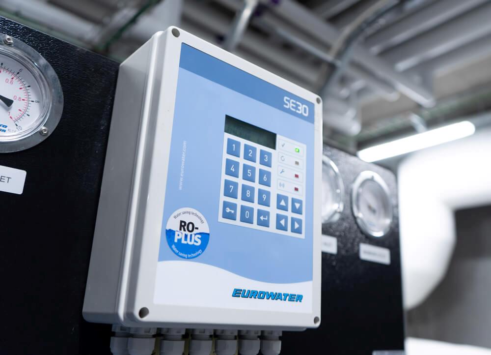 SE30-styringen er specialkonstrueret til SILHORKOs RO-anlæg og giver mulighed for analogt signal i forbindelse med ledningsevnemåler. Styringen bygger på PLC og har en lettilgængelig brugerflade med et stort og oplyst display. En standardiseret menustruktur giver let adgang til opsætning og driftsstatus. Endvidere kan blødgøringsanlægget også styres fra samme panel.
