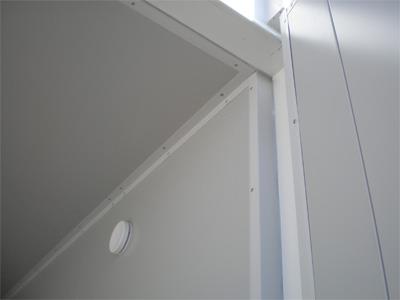Isoleret med sandwichpaneler bestående af to plader med rockwool imellem og overfladebehandlet hvide for en flot finish